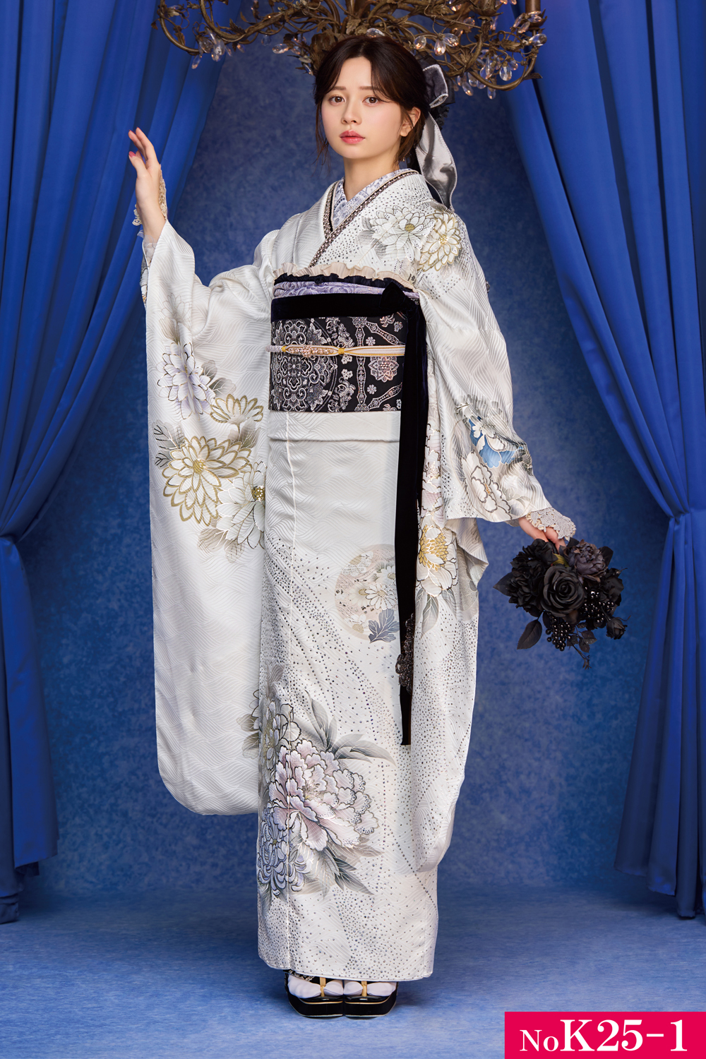 着物,袋帯,長襦袢,帯揚げ,帯締め,重ね衿,後ろ板,三重仮紐,ショール,草履,バック,肌襦袢,裾除け,足袋,衿芯,伊達締め,コーリンベルト,腰紐,前板,帯枕,髪飾り,